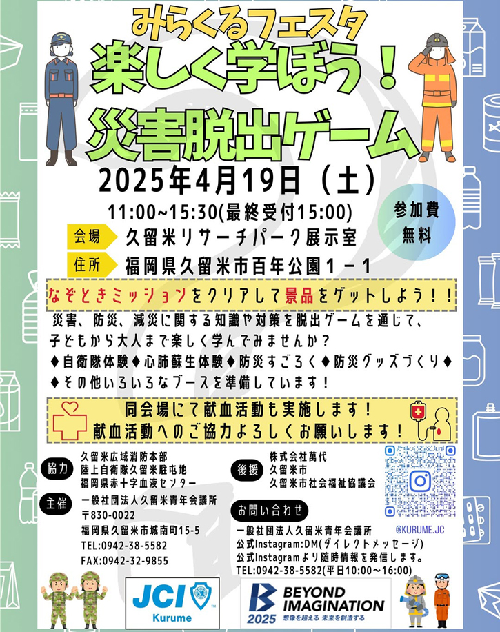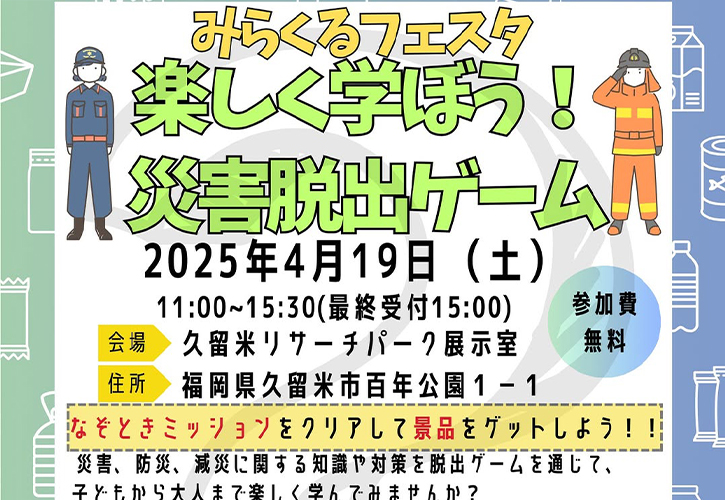 2025年4月19日(土)、久留米リサーチパークにて「災害脱出ゲーム」を開催いたします!