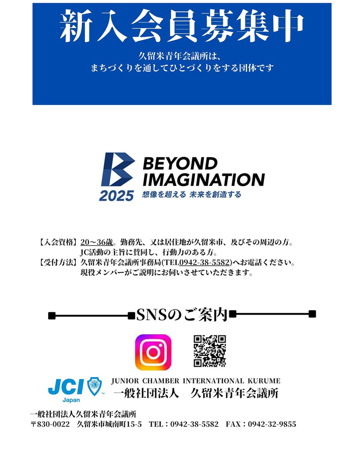お問い合わせは一般社団法人 久留米青年会議所(TEL 0942-38-5582)までお願いいたします。